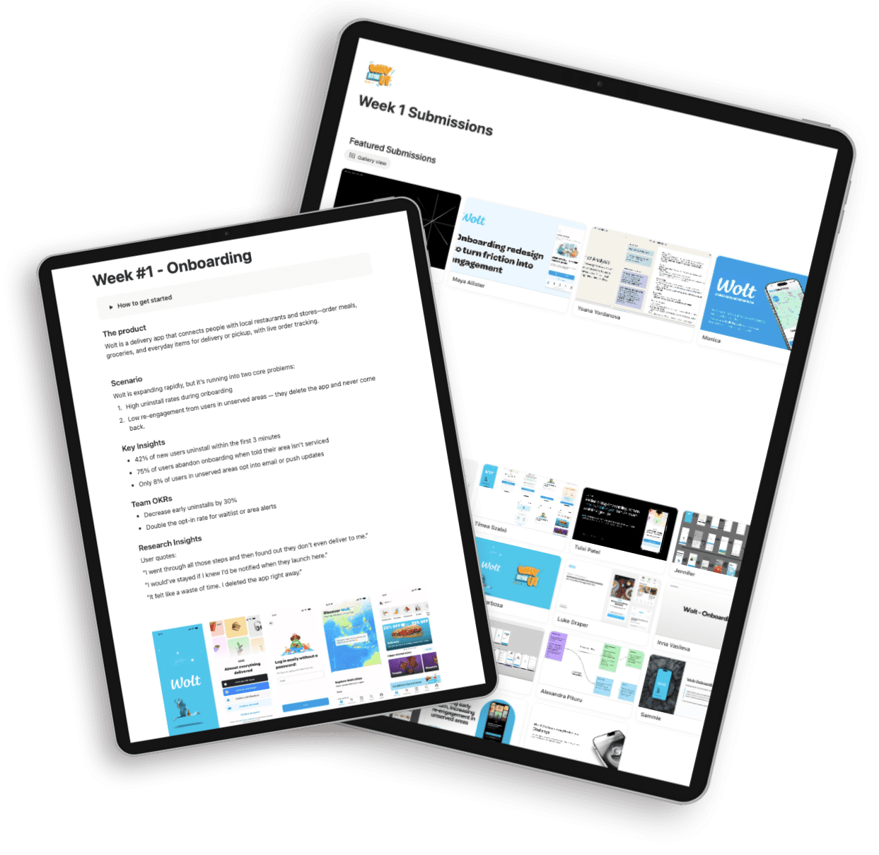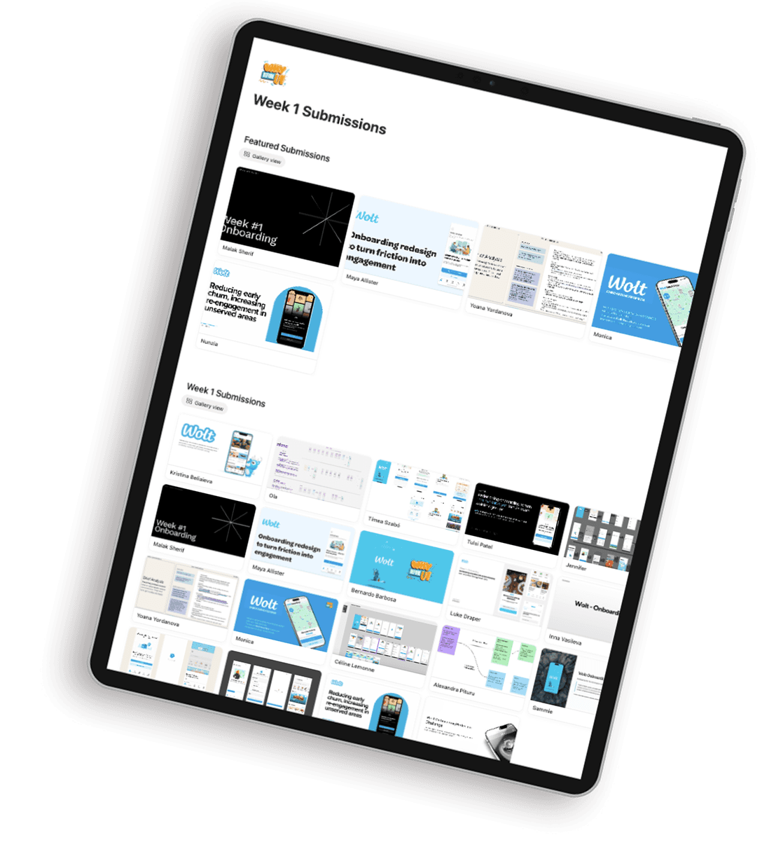 This challenge is what I wish I'd had 10+ years ago. Universities & bootcamps don't touch these skills, mine included. I've learned the hard way that this is what actually matters for your design career. These aren't course videos you have on in the background; they're design prompts that reflect real work scenarios. I believe real learning happens by doing, and that's how you take these skills into your actual day-to-day.